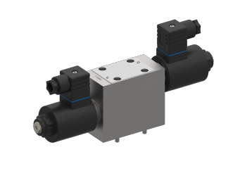 The 4-way/3-position solenoid-operated directional valves, series WESDB-43-D-6..., are size 6 with inter‐ face according to ISO 4401-03-02.